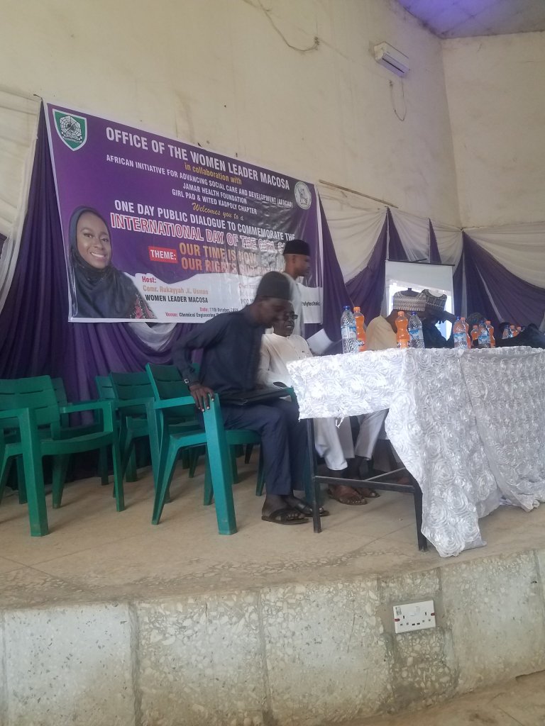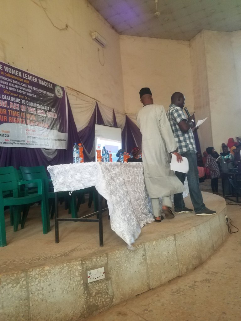 The Head of Department DR Ibrahim Gambo Ahmed in his speech says he was excited when jamar health foundation discussed there plan on educating a female student of mass communication kaduna polytechine about maintaining a proper hygiene. rides of the child under the Nigerian law according to CRA right to survivor and development right to a name freedom of concise and religion private life and family fee from discrimination to winter care protection and maintainers e t.c